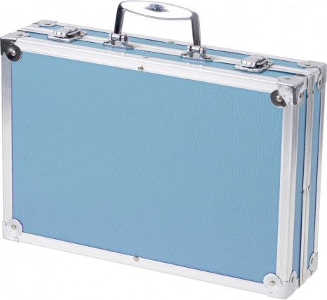 Kovinsko-plastičen kovček z močnim ročajem in zaponkami vse varno drži skupaj. Zlahka ga prenašate v šolo, na krožek ali na počitnice.
