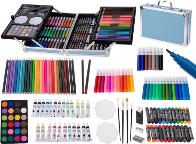 Vse, kar potrebujete za ustvarjanje, na enem mestu. Komplet združuje različne tehnike – risanje, barvanje in slikanje. Z bogato barvno paleto zlahka najdete pravi odtenek in v celoti izrazite svojo domišljijo. Prenosni kovček z zanesljivim ročajem in dvojno zaponko omogoča, da likovne pripomočke vzamete kamor koli.
