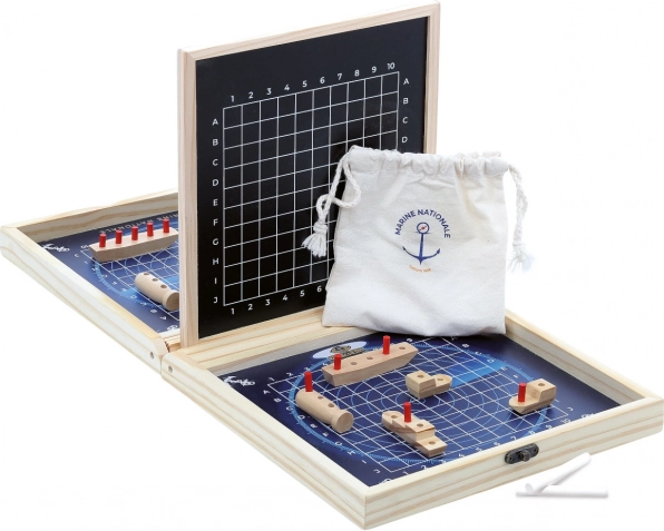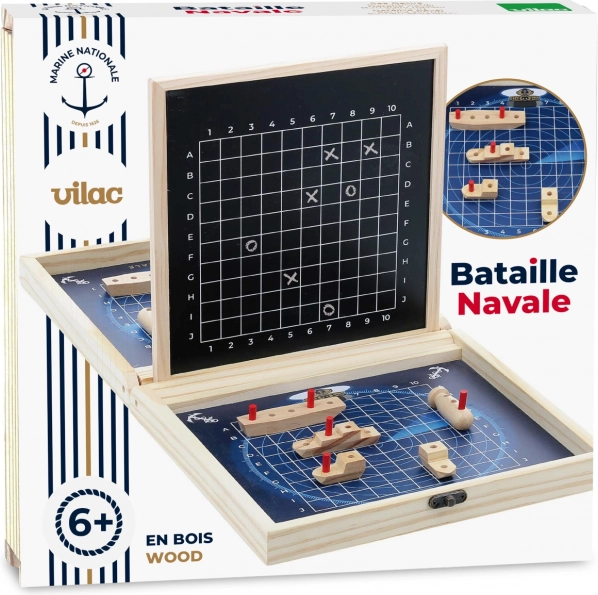 Odkrijte lepoto in strategijo s to izpopolnjeno igro od Vilac, ki vam prinaša mornarsko bitko kar domov. Praktični leseni kovček služi ne le za shranjevanje igralnih delov, ampak tudi kot igralna plošča. Zahvaljujoč površinam za kredo lahko enostavno sledite, kako vaša bitka napreduje. Odporni leseni deli zagotavljajo dolgo življenjsko dobo in privlačen dizajn bo očaral tako otroke kot odrasle.