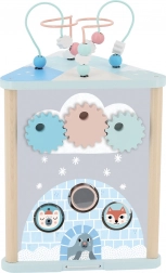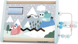 Ta lesena igrača s temo zimskega kraljestva vključuje več aktivnosti, ki bodo vašemu otroku pomagale razvijati njegove sposobnosti:
