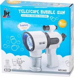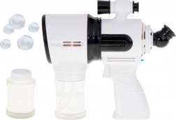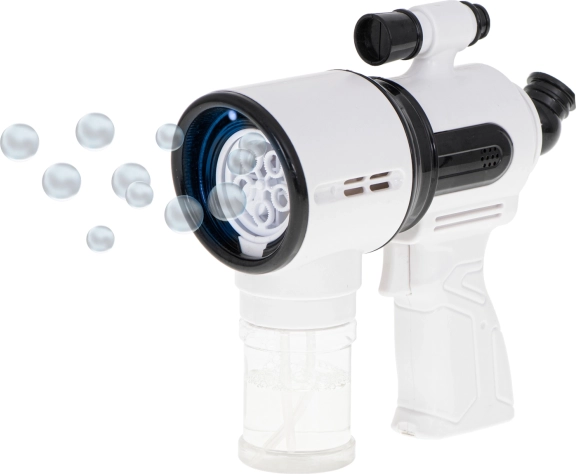 Ta bela pištola za mehurčke je idealna za otroke od 3 let naprej in za družinske aktivnosti na prostem. Vgrajen ventilator in sistem s 5 obročki zagotavljata gladko pihanje in tok desetin do stotin mehurčkov z enim pritiskom na sprožilec. Za še več zabave poskrbijo LED osvetlitev in zvoki, ki ju lahko z enim gumbom vklopite ali izklopite.