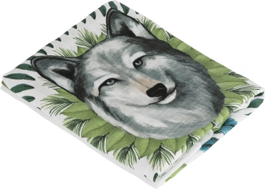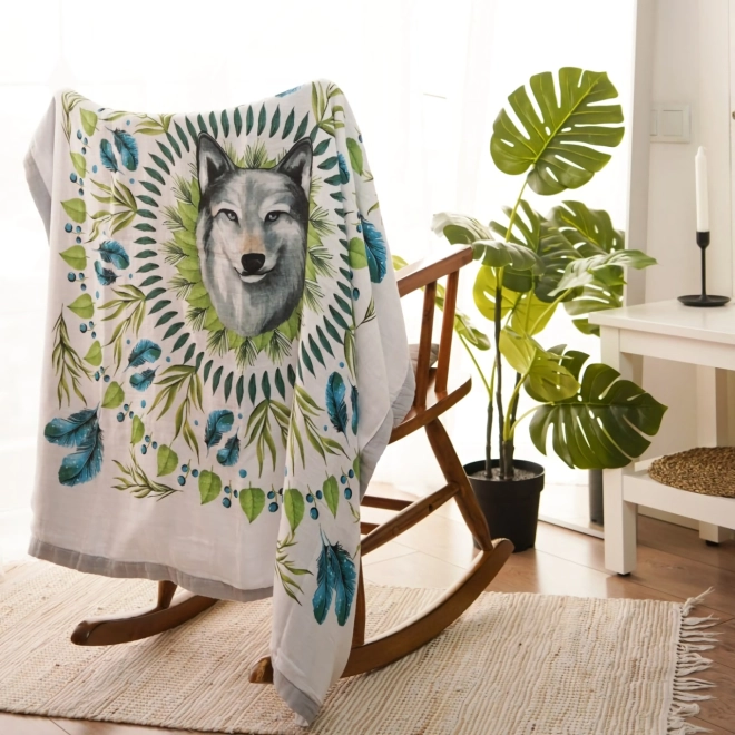 Bambusova muselinska odeja Tommy Lise z motivom volka 106x106 cm