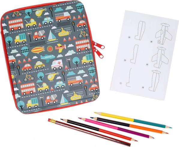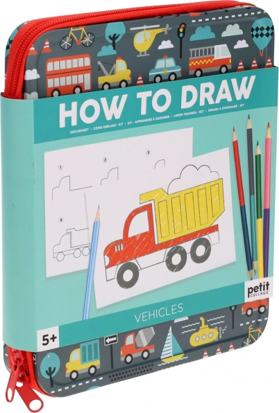 Ta prenosni kreativni komplet podpira domišljijo, fino motoriko in potrpežljivost. Z jasnimi navodili se otroci zlahka in z veseljem naučijo risati različna vozila. Kovinski etui z zadrgo ohranja vse pripomočke skupaj in je idealen za izlete, v avto ali na počitnice.