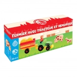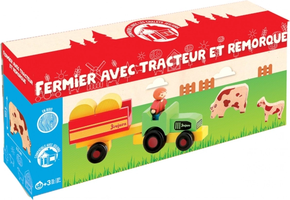 Podarite svojim otrokom neskončno veliko igralnih kombinacij z lesenimi figuricami kmeta od Jeujura. Ta set vsebuje premične figurice kmeta, traktor s prikolico in dve živali. Odlično za razvoj otroške domišljije.