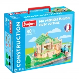 Odkrijte čar klasičnih francoskih igrač z leseno sestavljanko JEUJURA. Set z 80 kosi omogoča otrokom, da zgradijo svojo prvo hiško, se vozijo z avtomobilčkom po podlagi in se igrajo z figuricami. Sestavljanka iz masivnega lesa je varna, izdelana v Franciji in zapakirana v praktičnem kovčku. Spodbuja kreativnost, fino motoriko in domišljijsko igro.