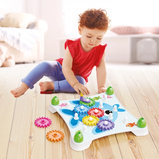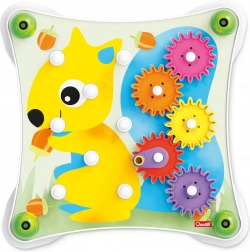Razporedite kartico, namestite zobnike, zavrtite ročico in opazujte veličastno verižno reakcijo, ki bo presenetila in razveselila vse otroke. Otrok se bo naučil osnovnih načel mehanike in se pri tem zelo zabaval. Nezlomljivo in varno. Izdelano iz visokokakovostne plastike. Vsebina pakiranja: 1 bela osnova, 1 ročica, 7 barvnih zobnikov, 3 dvostranske ilustrirane kartice. Glavne lastnosti: razvija fino motoriko, ustvarjalnost, domišljijo in logično-kombinatorično mišljenje; pakiranje vsebuje 13 delov; za otroke od 2 let dalje. Dimenzije pakiranja: 33 × 32,5 × 7 cm. Starost: 2+. Material: plastika