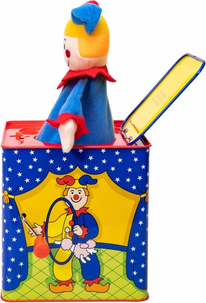 Glasbena skrinjica kašpar je brezčasna igrača narejena iz pločevine s čudovitim dizajnom, ki zagotavlja ure zabave. Preprosto obrnite ročico in poslušajte melodijo znane pesmi "Pop Goes The Weasel", dokler se pisani kašpar ne pojavi.