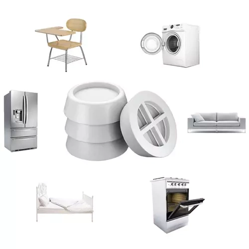 Stabilen dom brez hrupa in »plešočega« pralnega stroja. Podloge RUHHY iz trpežne termoplastične gume (TPR) absorbirajo mikro tresljaje, dušijo hrup in preprečujejo neželeno premikanje aparatov. Primerne za večino modelov pralnih strojev, hladilnikov, sušilnikov in pomivalnih strojev.