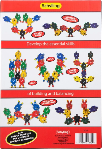 Odkrijte neskončne možnosti gradnje z barvitimi lesenimi roboti SCHYLLING. Vsaka figurica je skrbno izdelana iz kakovostnega lesa z vzdržljivo, netoksično površino, zato je idealna za male graditelje od 3 let naprej. Igra spodbuja zbranost, koordinacijo oko–roka in prostorsko zaznavanje.