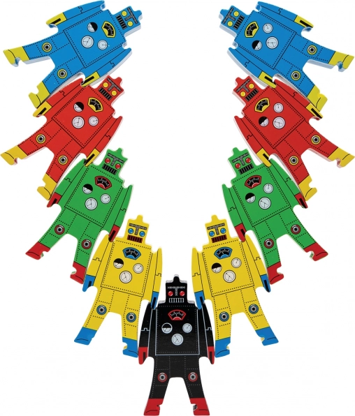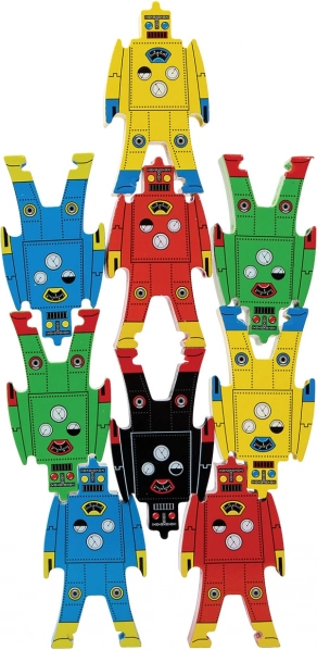 Zabavna uravnoteževalna igra z lesenimi roboti, ki razvija fino motoriko, potrpežljivost in logično razmišljanje. Devet barvitih robotov lahko zlagate na nešteto načinov – preizkusite svojo kreativnost in ravnotežje pri gradnji izvirnih konstrukcij iz varnih, netoksičnih materialov.