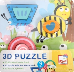 Lesena prostorska vstavljanka z veselimi, pisano obarvanimi motivi ribnika je idealen pripomoček za otroke od 3 let dalje. Koščki se vstavljajo v trdno osnovo v pravilnem zaporedju, kar podpira razumevanje posloupnosti in razvoj koordinacijskih sposobnosti. Kakovostna izdelava iz masivnega lesa in debele vezane plošče naredi to igračo za vzdržljivega spremljevalca pri vsakodnevni igri.