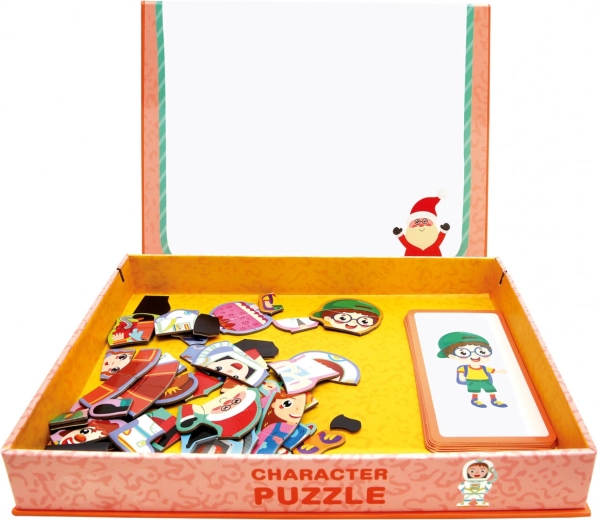 Magnetna sestavljanka figuric prinaša otrokom dvojno zabavo: lahko sestavljajo po predlogah ali pa prepustijo domišljiji prosto pot in ustvarjajo izvirne kombinacije. Magnetni kosi trdno držijo na pokrovu škatle, zato je rokovanje z njimi udobno doma in na potovanju.
