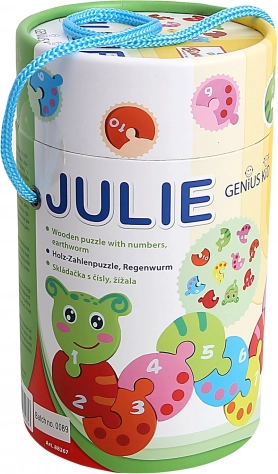 Barvita lesena sestavljanka v obliki gosenice otrokom na igriv način pomaga osvojiti zaporedje in osnovne številke. Robustni koščki so lahko oprijemljivi, živih barv in ohranjajo pozornost. Izdelana je iz masivnega lesa z varnimi barvami, priložena v praktični tubi z zanko za lažje prenašanje.