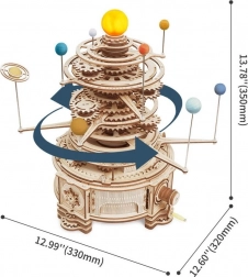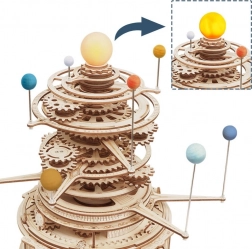 Ta podroben leseni model Osončja združuje zabavo pri sestavljanju s pametno mehaniko. Zahvaljujoč premišljenemu sistemu zobnikov ORRERY mehanizem simulira različne hitrosti kroženja planetov okoli središča – Sonca z LED osvetlitvijo, ki zasveti ob ročnem vrtenju kljuke.