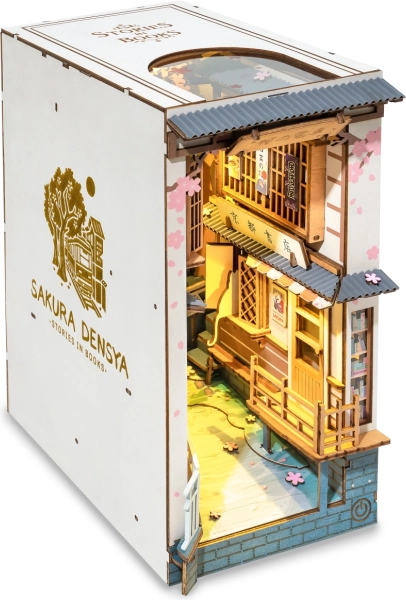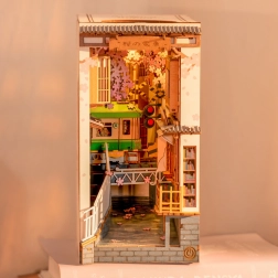 Spremenite svojo knjižnico v središče vsake sobe s tem tematskim podstavkom za knjige. Njegova podrobna izvedba in vgrajena LED osvetlitev ustvarjata prijetno vzdušje. Enostavna sestava, namenjena izkušenim modelistom, vključuje zlaganje delov iz vezane plošče in lepljenje kartonskih podrobnosti.
