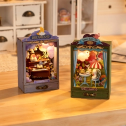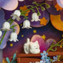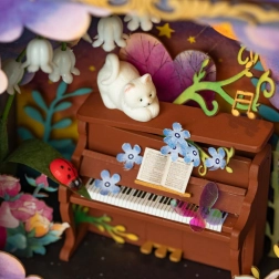 Ta očarljiva miniaturna diorama vam omogoča, da se potopite v svet domišljije. Znotraj omarice je topla osvetlitev, ki ustvarja čarobno globino scene. Praktičen predal na spodnjem delu omarice omogoča shranjevanje majhnih predmetov. Sestavljanje vključuje delo z vezanimi in kartonskimi deli, ki jih enostavno pripravite. Električne komponente so že vnaprej pripravljene, kar olajša namestitev. Potrebujete samo škarje, saj so ostali pripomočki del paketa.