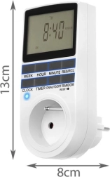 Digitalni časovni stikalni je uporaben v vsakem gospodinjstvu, pisarni ali trgovini. Omogoča nadzor nad časom delovanja naprav in je opremljen z 8 gumbi in ponastavitvijo za enostavno programiranje. Zaradi čitljivega zaslona lahko enostavno nastavite trenutni čas in program.
