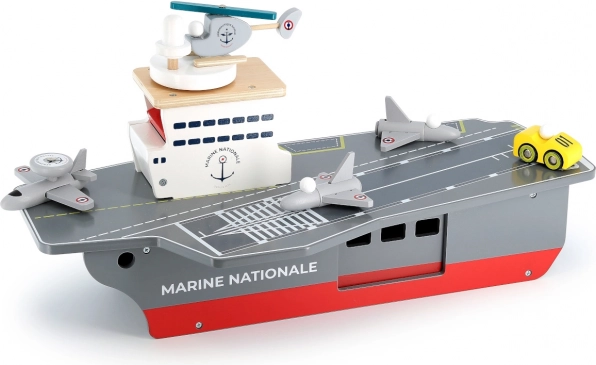 Ta natančno izdelana lesena letalonosilka zvesto posnema prave nosilce letal, vključno z označbami Marine Nationale. Narejena je iz vzdržljive, a lahke vezane plošče, zato je stabilna in enostavna za rokovanje tudi za mlajše otroke. Realistični poslikani detajli in premišljeni elementi spodbujajo domišljijo ter prinašajo avtentično pomorsko doživetje.