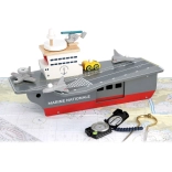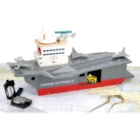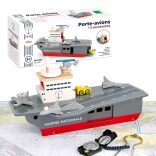 V kompletu je 5 kosov: 2 lovca, 1 izvidniško letalo, helikopter in servisno vozilo. Otroci lahko načrtujejo vzlete, pristanke in servisne posege kot na pravi ladji.