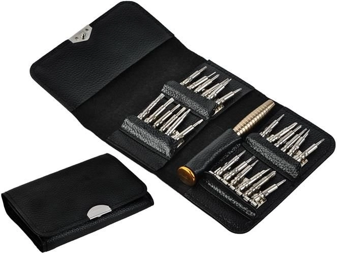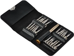 Komplet preciznih izvijačev 25v1 vsebuje skupaj 24 zamenljivih konic in osnovno držalo. Idealen je za servisiranje in popravila večine elektronskih naprav, ki so na voljo na trgu.