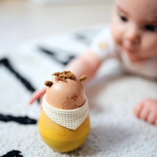 Odkrijte svet lepote in zabave s senzorično leseno vidro. Ta igrača je popolna za spodbujanje sluha vašega otroka zahvaljujoč vgrajenemu zvončku, hkrati pa razvija fino motoriko, saj se po prevrnitvi sama ponovno postavi. Združuje naraven les z bombažnimi detajli za prijetno taktilno izkušnjo.