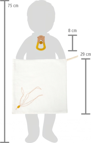 Lahko se uporablja kot ljubkovalna dekica ali robček za slinjenje. Ima zanko za hitro pritrditev na ropotuljo, dudo ali voziček.