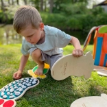 Komplet za senzorične stopinje in kroge je zasnovan tako, da je trden in vzdržljiv, idealen za vsakodnevno uporabo. Barvni in kreativni dizajni dodajo estetiko vašemu prostoru in se lahko uporabljajo tudi za različne dejavnosti. Stilni in močni leseni organizatorji omogočajo enostavno shranjevanje kompleta.