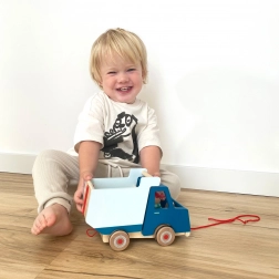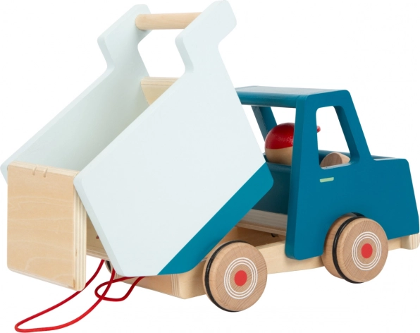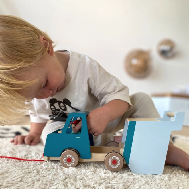 Ta moderen leseni kiper je popolna igrača za male gradbenike. Opremljen je s kesonom, ki ga je mogoče povsem prevrniti, in z voznikom, ki se med vožnjo ziblje, kar prinaša dodatno zabavo. Zahvaljujoč gumiranim kolesom se premika tiho in gladko.