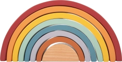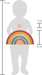 Ta lesena mavrica ponuja odlično priložnost za otroke, da razvijajo svojo domišljijo in motorične spretnosti. Vsebuje 8 barvnih lokov in leseno kroglico, ki lahko služi kot učni pripomoček za razumevanje dimenzij in barv. Igrača je izdelana v skladu z Montessori pedagogiko in je idealna za prosto igro.