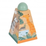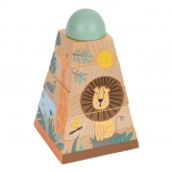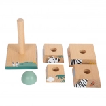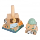 Ta igrača iz trpežnega lesa otrokom omogoča izboljšanje motoričnih spretnosti in koordinacije oko–roka. Sestavlja jo šest delov, ki ob pravilnem natikanju razkrijejo vesela safari bitja. Stolp je odličen tako kot izobraževalno orodje kot tudi estetski dodatek vsake otroške sobe s svojimi živahnimi barvami.