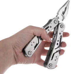Univerzalno multifunkcijsko orodje 13-v-1 TRIZAND združuje ključna orodja v robustnem, priročno zložljivem ohišju. Pri delu na prostem, na gradbišču ali doma boste cenili hitro dostopnost noža, žage, klešč, izvijačev in drugih funkcij. Priložen je komplet 11 bitov z adapterjem v priročnem organizatorju, zato lahko zlahka zategnete ali popustite različne tipe vijakov.