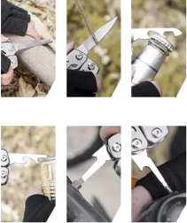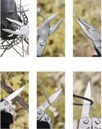 Pripravljeno na vse: nož, žagica, klešče, kombinirke, rezalnik žic, odpirači in izvijači za aktivnosti na prostem, delavnico in vsakodnevno uporabo.