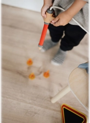 Del kompleta sta leseni »cev« in brizgalka, s katero otroci zlahka »ugasnejo« vsak plamenček. Spodbuja domišljijo in razvoj fine motorike.