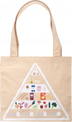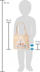 Z bombažno vrečko s potiskom prehranske piramide se otroci na igriv način učijo o pravilni prehrani, ekologiji in odgovornih nakupih. Vzdržljiva izdelava iz lesa in tekstila je prijetna na otip ter idealna za otroške kuhinjice in prodajne stojnice. Komplet je združljiv z drugimi izdelki linije »Fresh«.