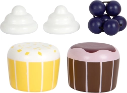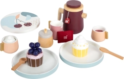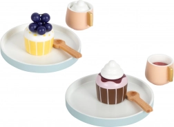 Ta čajni in kavni komplet je idealen dodatek za otroško kuhinjo, ki obogatijo igro z novimi razsežnostmi. Vsebuje skodelice, krožnike, žličke, sladkornico, mlečno posodo, vrč in še veliko več, vključno z dekorativnimi muffini in smetano. Lastnosti izdelka: