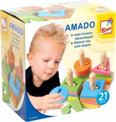 Ta kakovostna lesena natikanka ponuja 21 barvnih delcev in stabilno osnovo s količki. Zahvaljujoč pametno oblikovanim odprtinam in stebričkom si otroci urijo uparjanje oblik, prepoznavanje barv in prostorsko zaznavanje. Kompaktne mere 15 × 11,5 × 15 cm omogočajo enostavno shranjevanje ter igro na mizi ali podlogi.