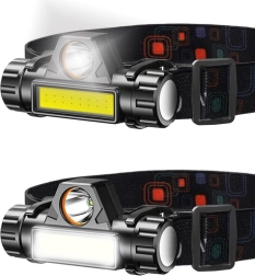 Izdelana iz kakovostnih materialov, aluminija in ABS, je ta naglavna svetilka odporna na mehanske poškodbe. Ima dva načina svetenja ter LED diodo COB in CREE panelno svetlobo. Vgrajen akumulator, ki se polni preko USB priključka, vam zagotavlja svobodo gibanja.