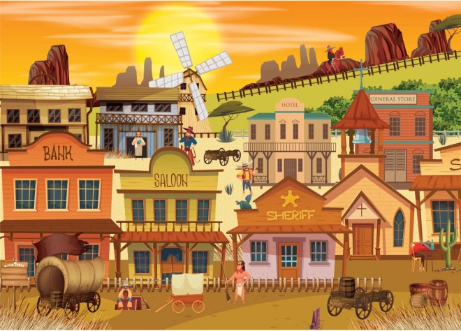 Potopite se v pisani svet Divjega zahoda s prizorom, polnim podrobnosti – saloon, banka in šerifova pisarna vas posrkajo v atmosfero zahodnega sončnega zahoda. Sestavljanke BRAIN TREE izstopajo z vrhunskim tiskom in mat površino, zahvaljujoč kateri so večplastni reliefni detajli popolnoma berljivi v vseh svetlobnih pogojih.