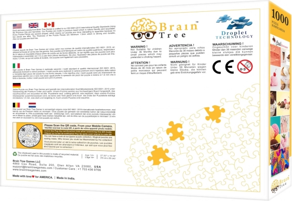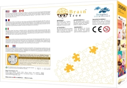 V paketu najdete vse, kar potrebujete za udobno sestavljanje: plakat v enaki kakovosti kot slika na sestavljanki, več kartonskih predalčkov za razvrščanje, stojalo za pokrov škatle za boljši pregled in pri kompletu 1000 kosov tudi trpežno zip vrečko za varno shranjevanje kosov.