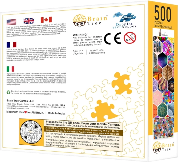 500 natančno izrezanih koščkov naključnih oblik vam prinese edinstveno izkušnjo pri sestavljanju.