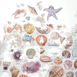 Sestavljanka z licenco dela The Beachcomber’s Companion [Priročnik za nabiralce plažnih zakladov] avtorice Anne Marlis Burgard, znane ameriške popotnice in pisateljice ter ustvarjalke multimedijskih projektov. Zvesto prikazuje školjke najrazličnejših živali ter druge zaklade, na katere lahko naletite med potepanji po plaži. Nekateri predmeti so oblikovani kot samostojni koščki nenavadnih oblik, ki v sestavljanje vnesejo osvežujoč element. Avtorica ilustracij je Jillian Ditner, znanstvena ilustratorka, znana predvsem po svojem delu v Severni Ameriki. Sestavljanke Galison so izdelane z znatnim deležem recikliranega papirja in imajo vrhunski tisk z neškodljivimi barvami. Premazane so z mat zaključkom, ki v vseh okoliščinah zagotavlja verno podajanje detajlov in barv. Hrbtna stran je prevlečena z gladko, na otip prijetno površino, zaradi katere se pri shranjevanju razporejene sestavljanke ne nabira prah. Skupaj s skrbno zapakiranimi koščki v pakiranju najdete tudi zloženko z referenčno sliko, ki običajno vsebuje dodatne informacije o ustvarjalcih in ozadju nastanka dela. Dobavljeno v izjemno čvrsti in privlačno oblikovani kartonski škatli iz recikliranega kartona in trajnostno pridobljenih materialov s certifikatom FSC®. Glavne lastnosti: 1000 natančno izrezanih koščkov, od tega 20 z edinstveno obliko; izdelano z uporabo recikliranih in trajnostno pridobljenih materialov; skrbno izbran motiv priznanih ustvarjalcev in umetnikov; tisk in izvedba najvišje kakovosti; vsebuje referenčno sliko