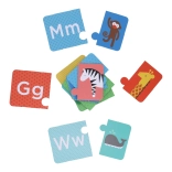 S temi didaktičnimi sestavljankami lahko otroci pripisujejo črke slikam živali glede na njihove angleške nazive, kar pomembno prispeva k širjenju besedišča. Zahvaljujoč reliefno vtisnjenim črkam lahko otroci črke ne le vidijo, temveč jih tudi občutijo, kar igro naredi še bolj privlačno. Vsi delci so izdelani iz 100% FSC papirja, tiskanega z rastlinskimi črnili, kar zagotavlja varnost in prijaznost do okolja.