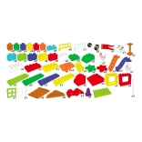 Veliko število delčkov otrokom ponuja široke možnosti ustvarjanja – od hišk do preprostih vozil in kmečkih prizorov.