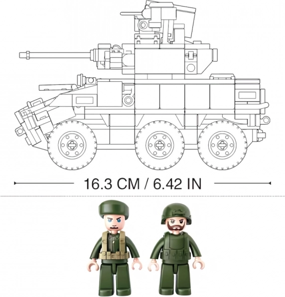 Sluban oklepno bojevno vozilo 6x6 EBRC Jaguar prinaša avtentičen videz sodobnega izvidniškega in bojevnega stroja. Vrtljiva kupola, realistični detajli in premične minifigurice zagotavljajo odlično izkušnjo pri gradnji in igranju. Kakovostna, neškodljiva in trpežna ABS plastika zagotavlja dolgo življenjsko dobo in trdnost modela.