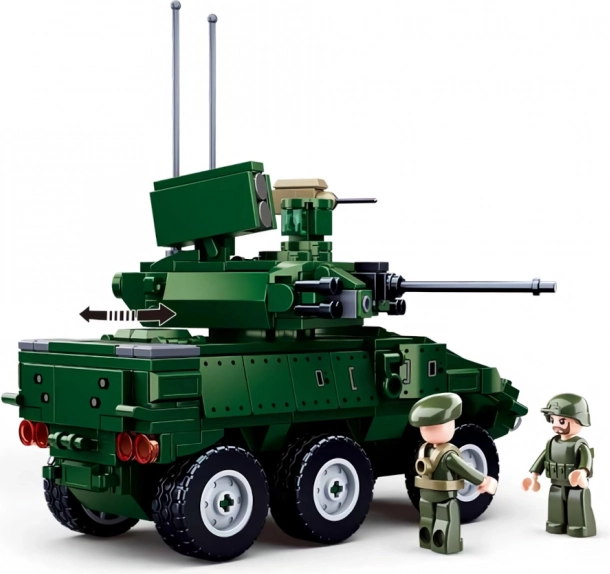 Podrobna izvedba oklepnega vozila 6x6 z vrtljivo kupolo in pristnimi elementi zagotavlja odličen videz in igralnost.