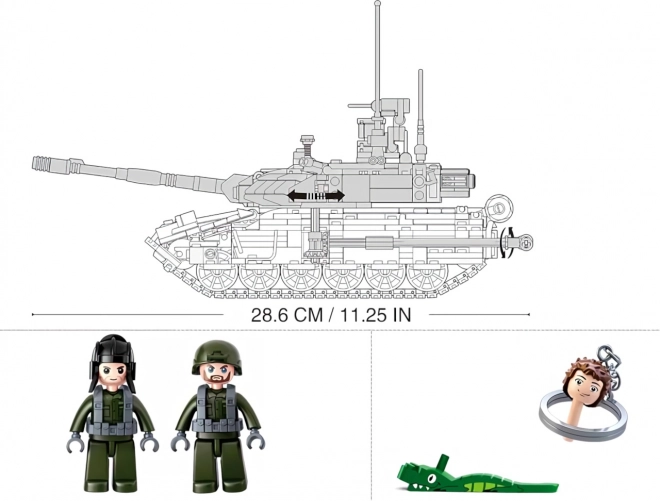Sestavite realističen tank T-90 iz kompleta SLUBAN s skupno 758 koščki in 2 figuricama. Trpežna ABS plastika, združljivost z LEGO, COBI in Mega Bloks ter srednja zahtevnost naredijo ta set odlično izbiro za male in velike graditelje.
