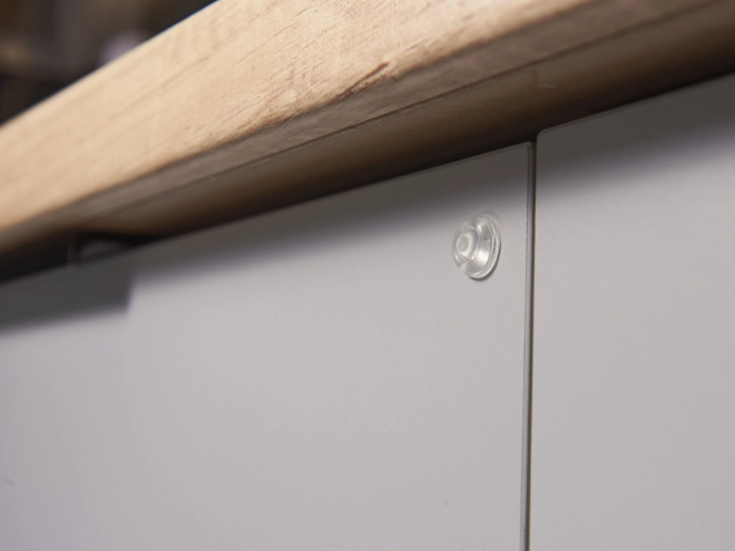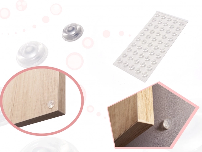 Prozorni silikonski odbijači se zlijejo s površino in ščitijo stene ter pohištvo brez posega v dizajn.