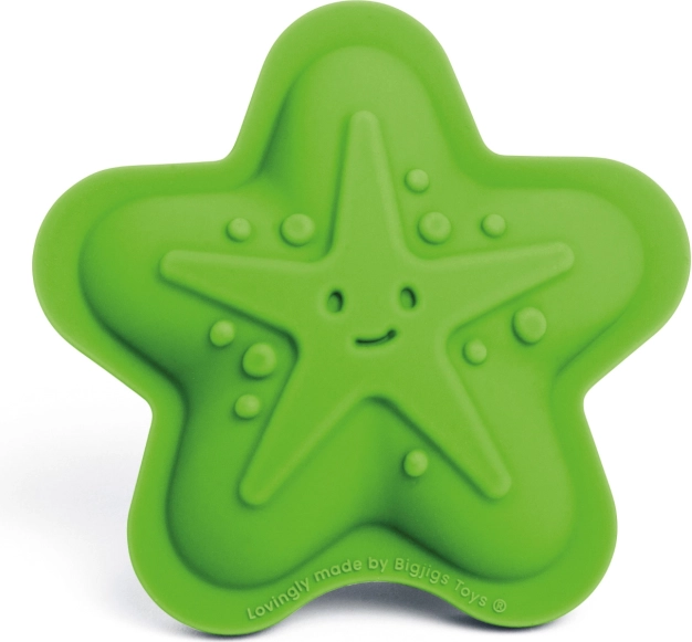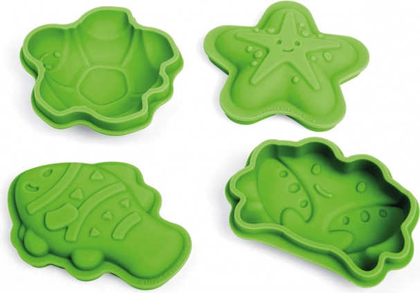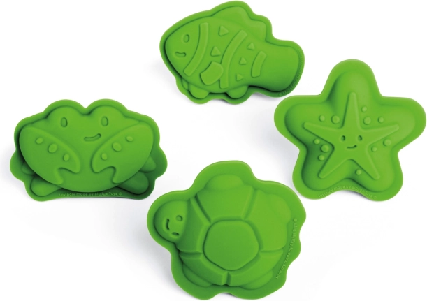 Odkrijte igriv komplet štirih 100% silikonskih modelčkov v zeleni različici Meadow znamke BIGJIGS TOYS. Z njimi bodo otroci ustvarili čudovite peščene stvaritve z motivi morskega sveta – morske zvezde, raka, ribe in želve. Modelčki so odporni na temperature in madeže, prijetno mehki in varni za majhne roke. Po igri jih preprosto shranite v priloženo bombažno vrečko.