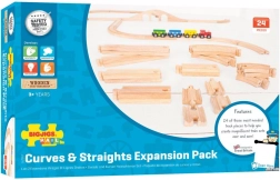 Set lesenih tir Bigjigs Rail prinaša otrokom priložnost za neskončne igre in razvoj kreativnosti. Z 24 deli lahko enostavno ustvarijo različne konfiguracije prog in interaktivne zgodbe. Zaradi kakovostnih naravnih materialov in združljivosti z ostalimi znamkami je ta set idealen kot dodatek ali širitev obstoječe vlakovne proge.