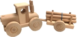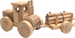 Ta naravni leseni traktor s prikolico za hlode bo razveselil male voznike in ljubitelje klasičnih igrač. Natančno izdelan model iz bukovega lesa ponuja gladko vožnjo, vzdržljivost in brezčasen dizajn brez lakov in kemičnih obdelav.